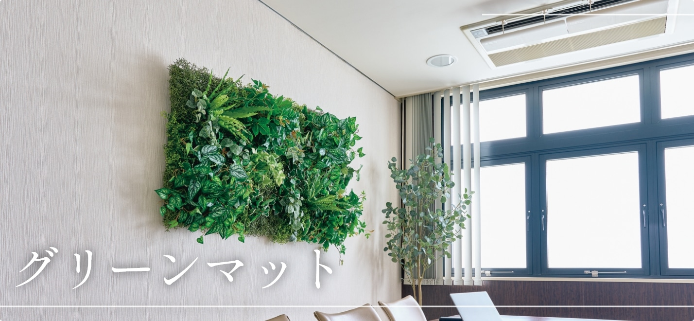 動線を妨げないフェイクグリーンマットはオフィス、ホテルロビー、商業施設など、企業価値を高める空間づくりに最適です。