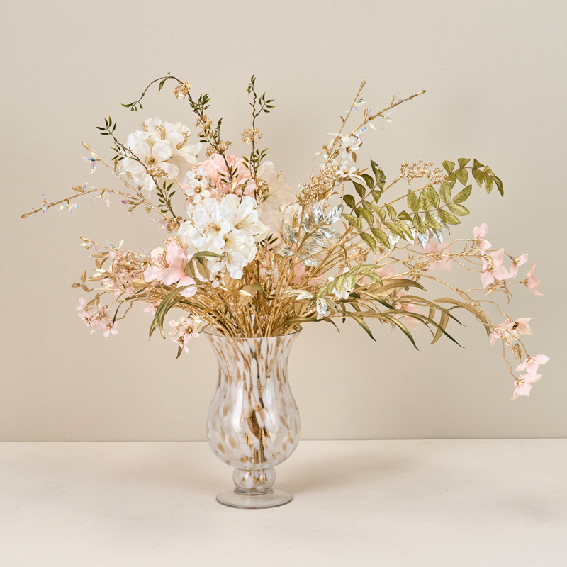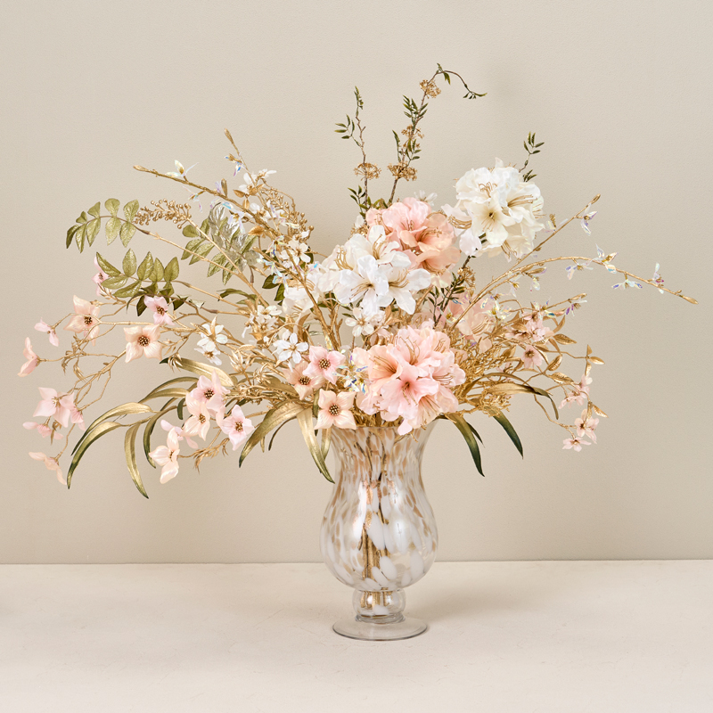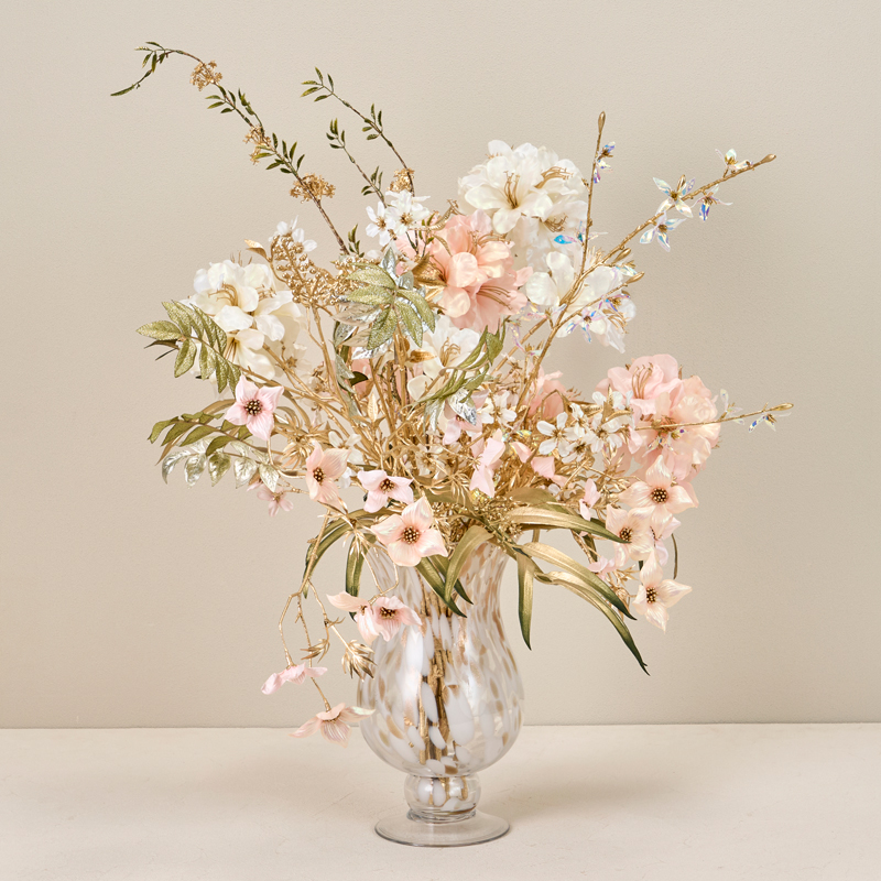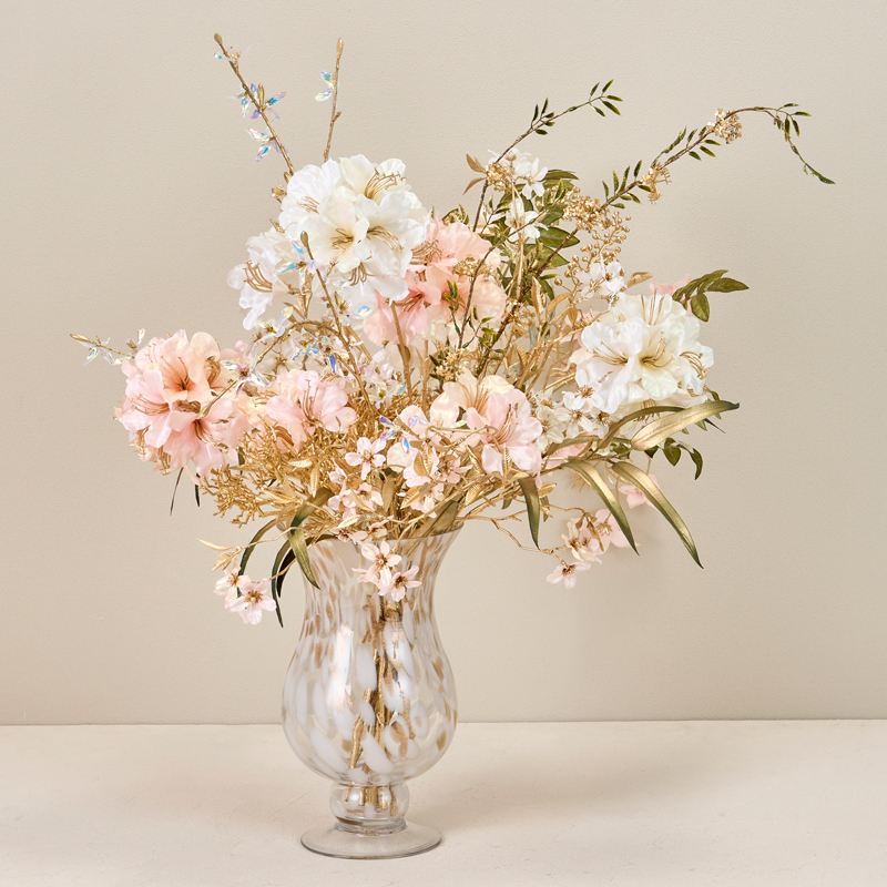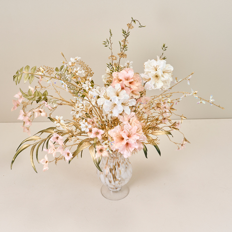 コメント | 上品な光沢のあるホワイトとピンクのお花にゴールドを合わせてより華やかさをプラスしています。 |