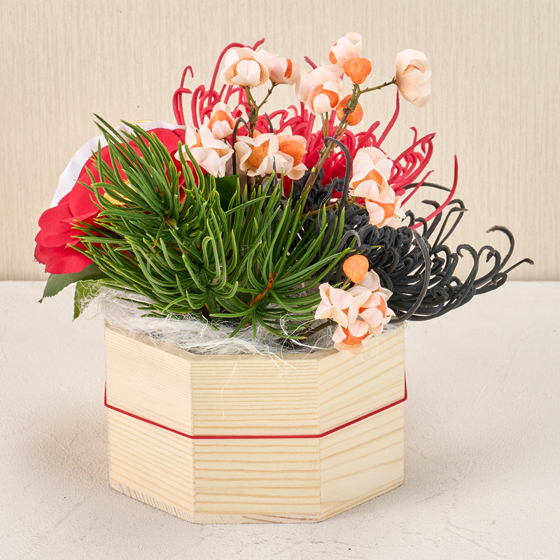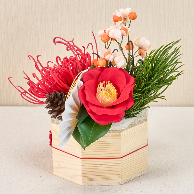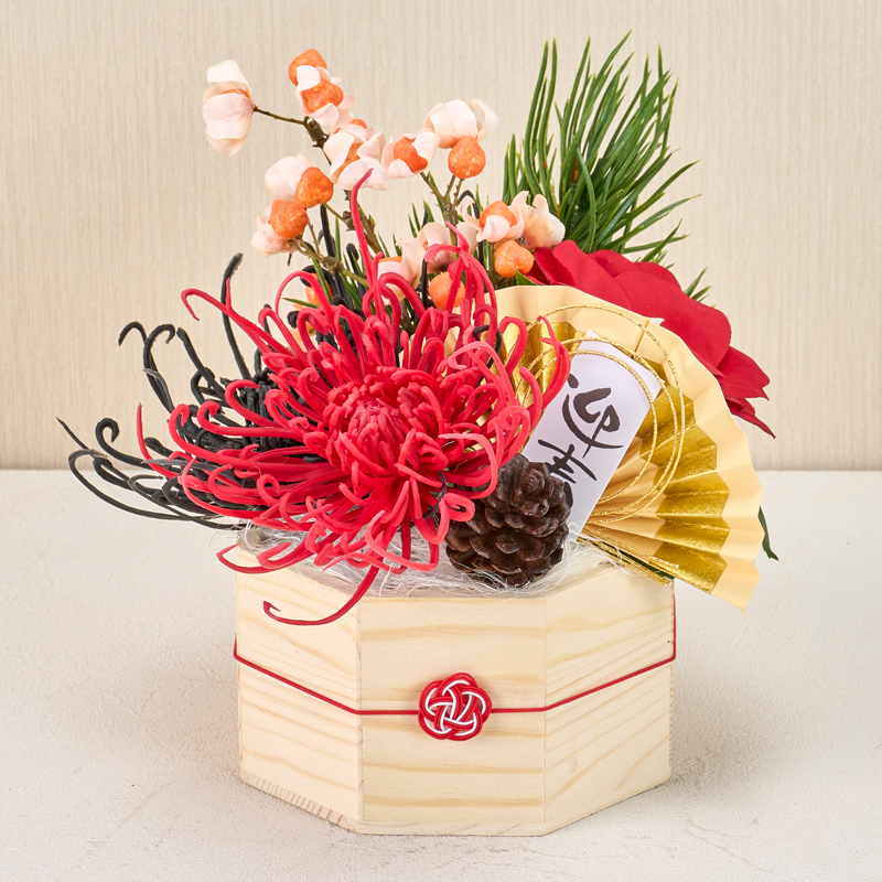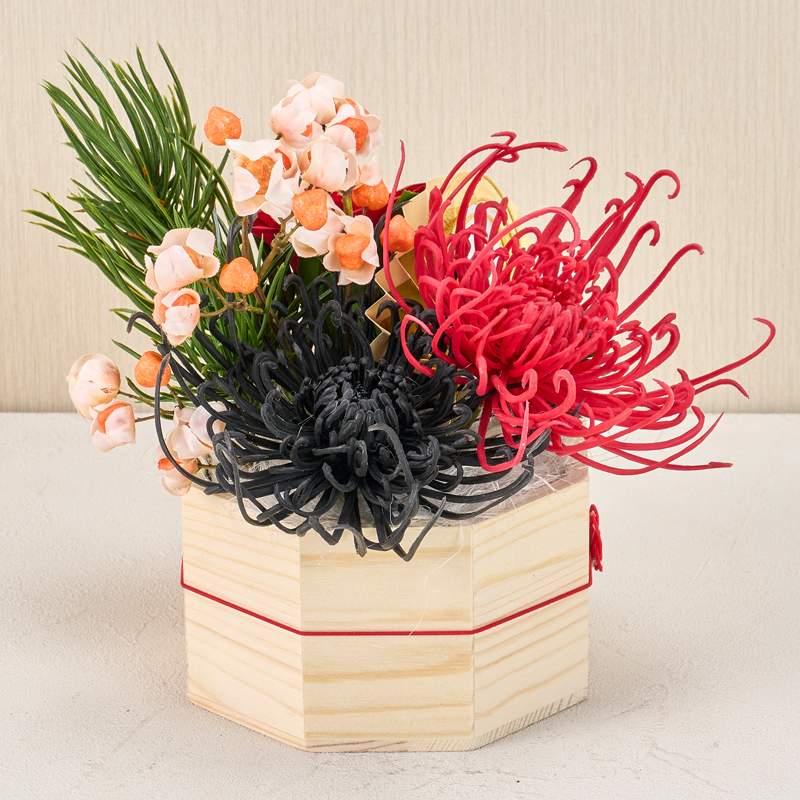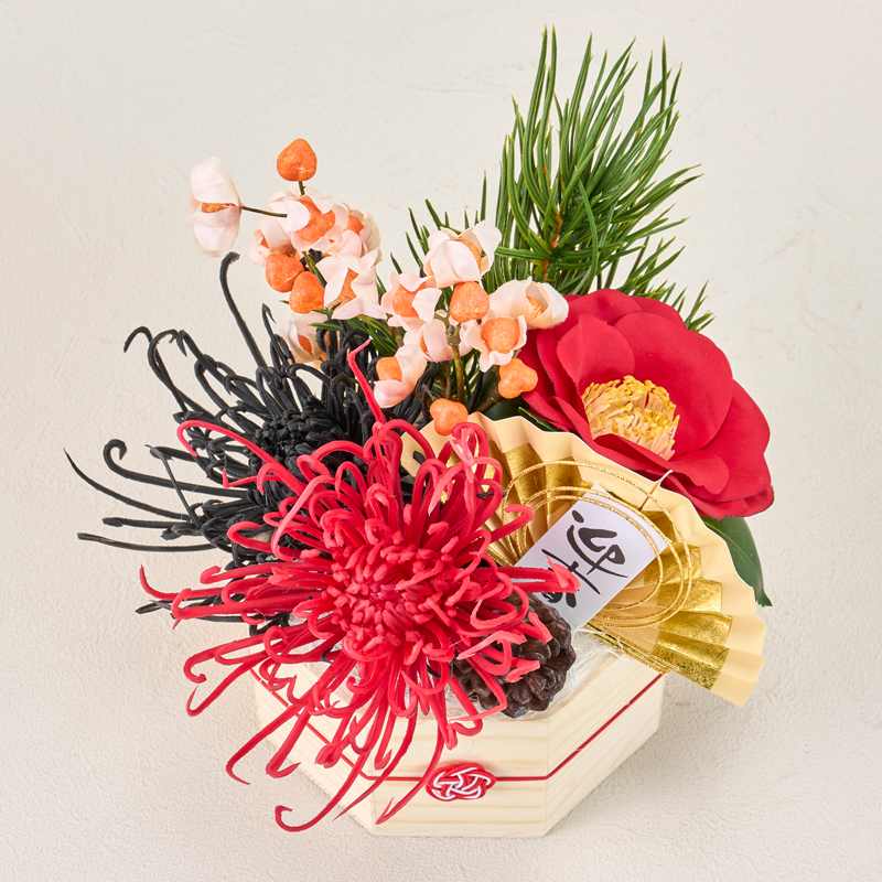 コメント | 個性的な糸菊ピックをメインにしたお正月アレンジです。 |