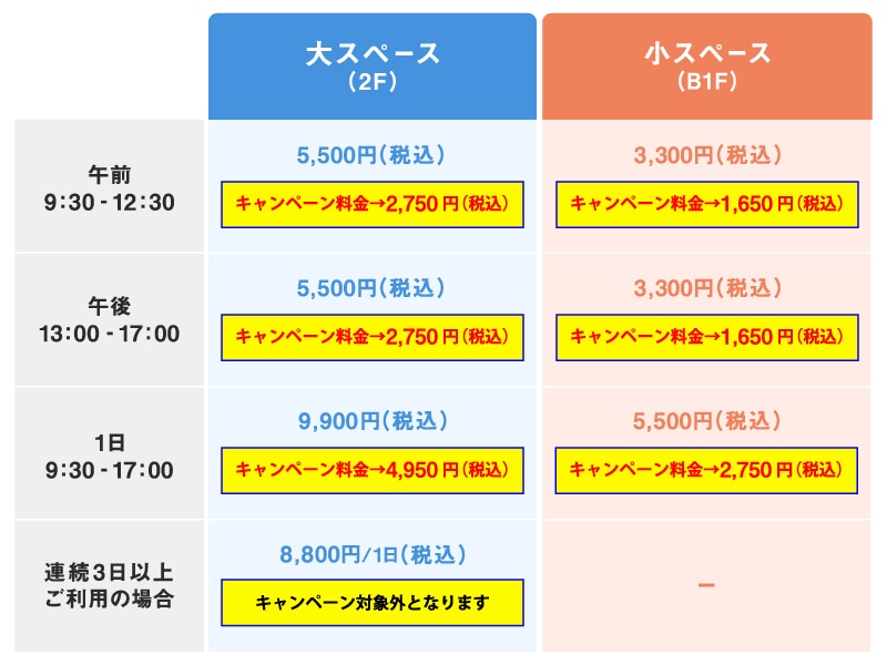 レンタルスペースご利用金額半額キャンペーンのご案内