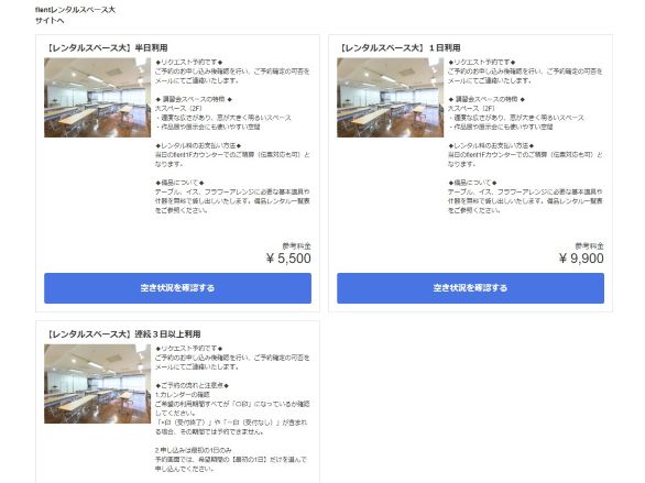 レンタルスペース大の空き状況の確認画面から入ります。
