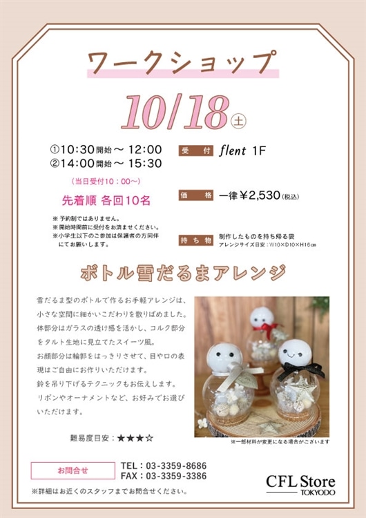 ◆10月18日(土) ボトル雪だるまアレンジ◆