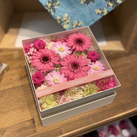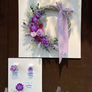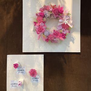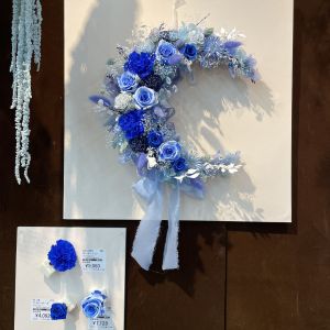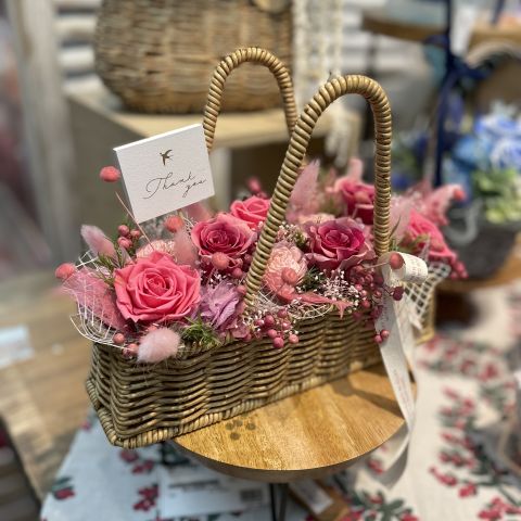プリザーブドフラワー、カラードライフラワーをメインに、ナチュラルドライも取り混ぜて