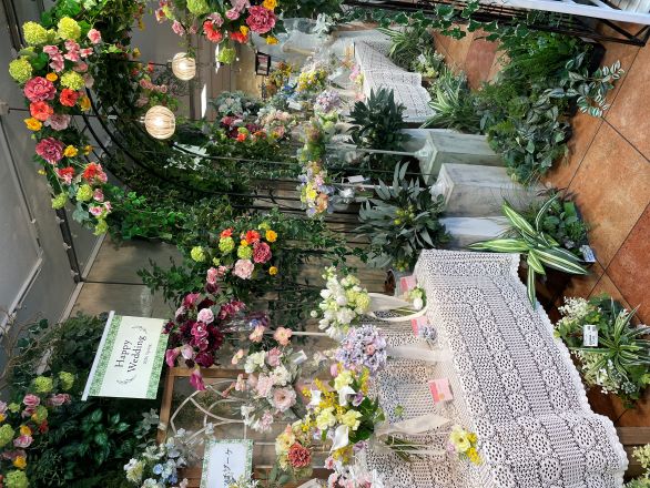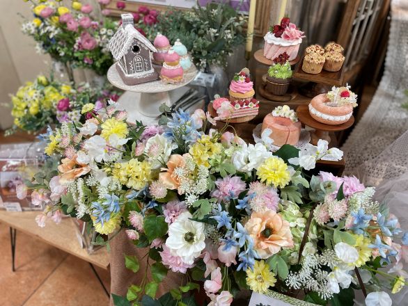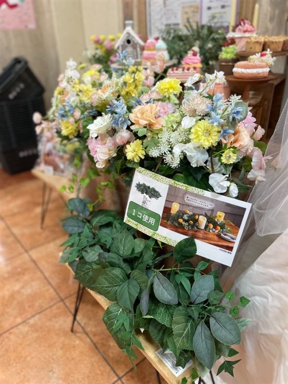 また、人気のフローラルフォームアート作品を並べた、ガーデンパーティー風にのディスプレイもご覧ください。