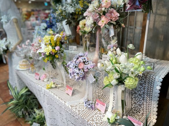 flent1Fにて、春のウェディングシーズンにおすすめのアーティフィシャルフラワーブーケを多数ご覧いただけます。