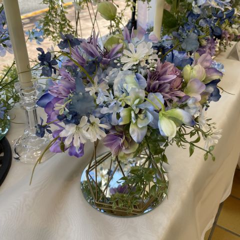 この時期ならではの水を含んだような青系のお花はウェディングの花装飾におすすめです。