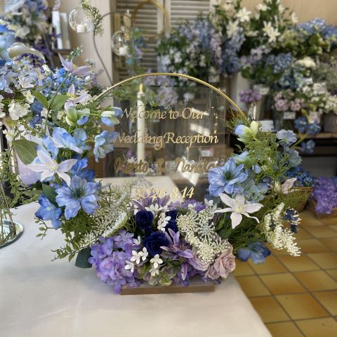 瑞々しい青系のお花でご提案する「Shower of flowers シャワーオブフラワーズ 」。