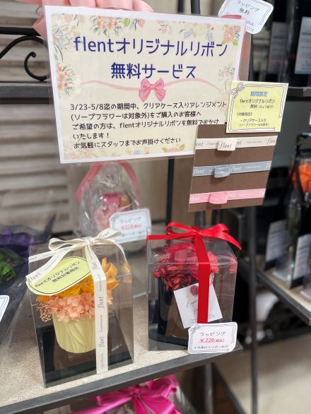 期間中にクリアケース入りアレンジメントをご購入いただくと、普段は有料の「リボンかけ」を無料で承ります!