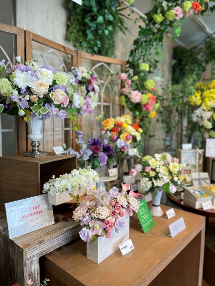 ギフト用にフラワーアレンジをお探しの方はぜひflent1Fへお立ち寄りください。