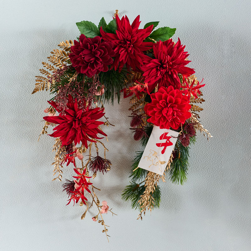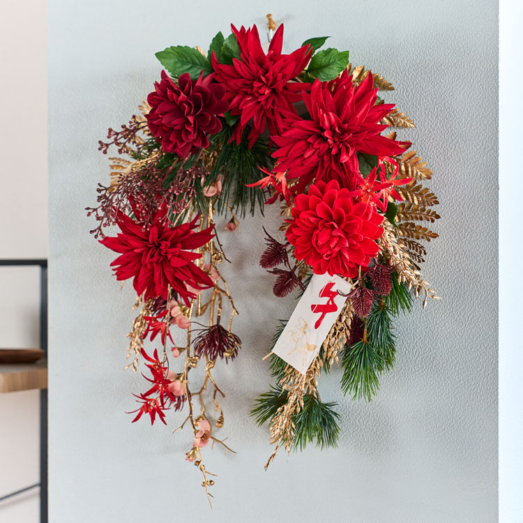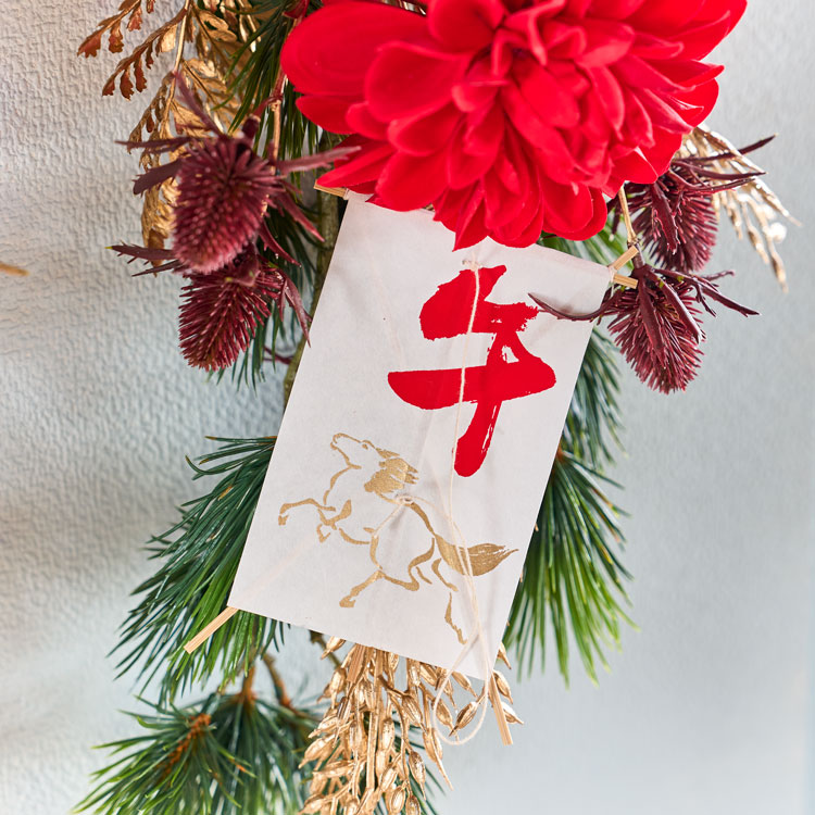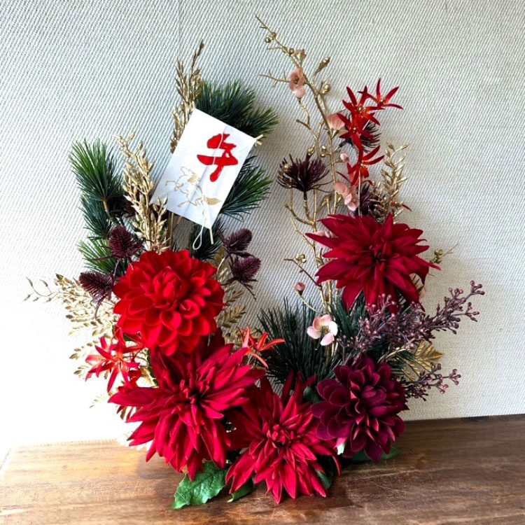 午年にふさわしい縁起の良さと存在感あふれるアレンジで、上下どちらの向きでも飾れるのも魅力です。
