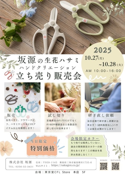 坂源の花鋏は、120年以上続く技とこだわりで、一本一本丁寧に作られています。