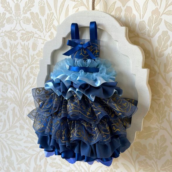 数種類のブルーリボンを重ねた、色の深みの表現もレッスンポイントです。