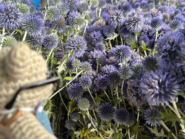 特徴的なチクチクしたとげのようなものはルリ玉のつぼみなのですが、花が咲いてしまうと商品にならないので収穫のタイミングがとてもシビアです。